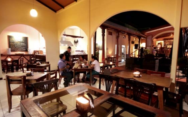 Kaffé Café Bistro está ubicado en una casa colonial recientemente restaurada en pleno parque central de Masaya. Tiene diferentes ambientes temáticos pastelería, taberna alemana, pub inglés, cafetería con diversas propuestas gastronómicas y selección de menús internacionales: salchichas tipo bratwurst, gran variedad de chorizos de diferentes países. El ambiente gira alrededor de una magnífica terraza interior.