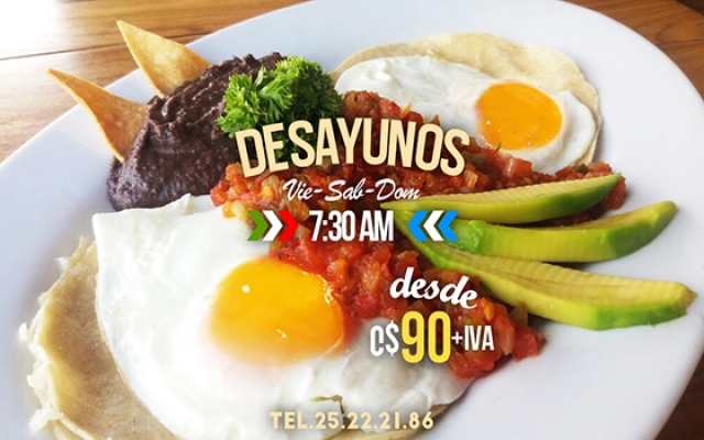 HORARIOS: Lunes a Jueves 11:30am-9:30pm Viernes a Domingo 7:30am-10pm